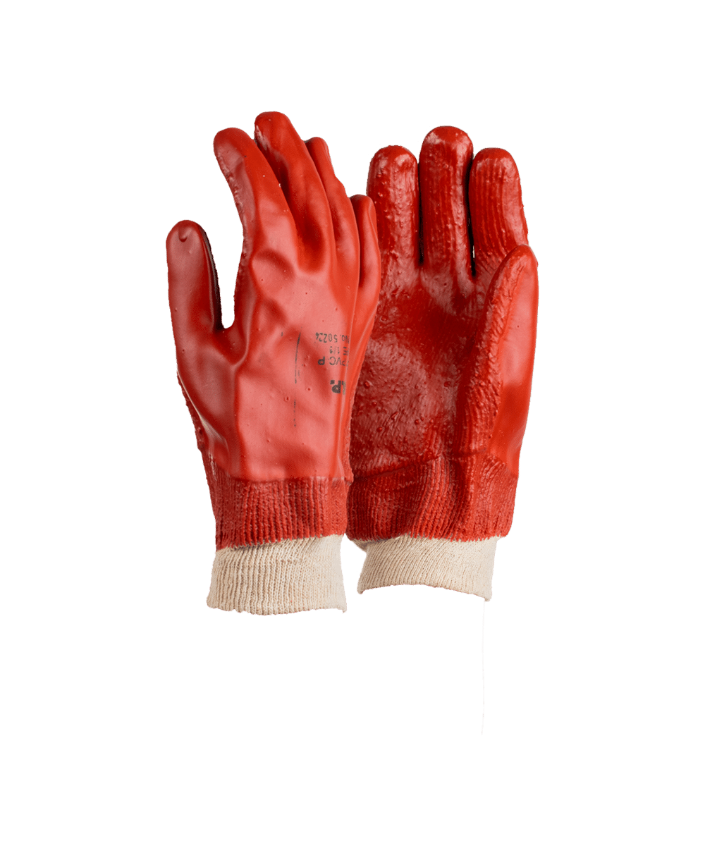 - Red PVC fully coated gloves